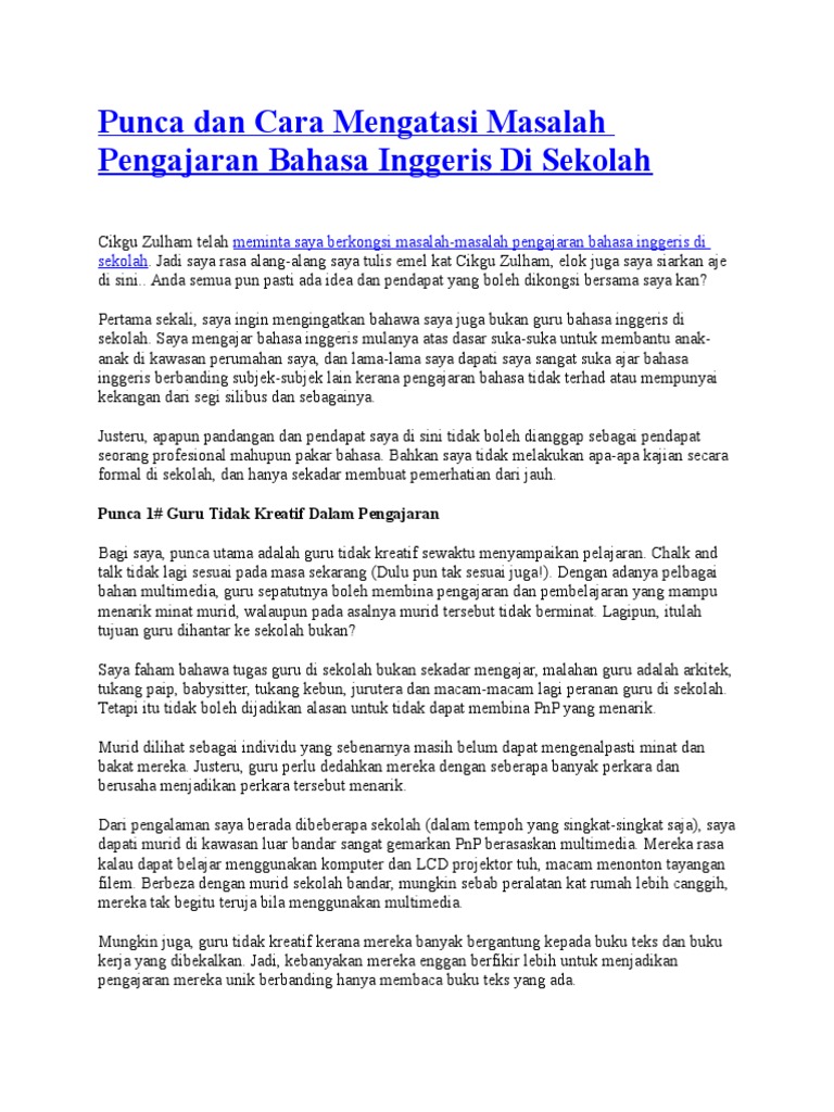 Punca Dan Cara Mengatasi Masalah Pengajaran Bahasa Inggeris Di Sekolah Pdf